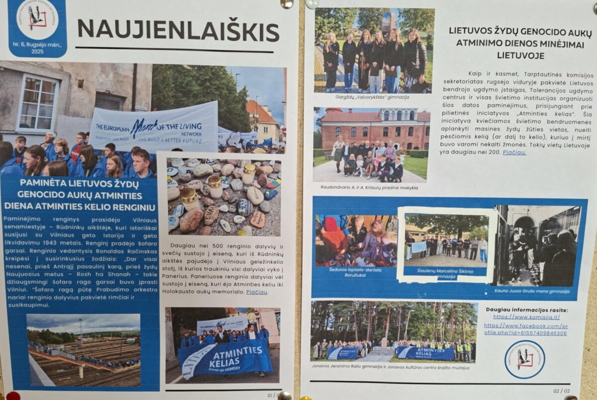 Tarptautinės komisijos informaciniame naujienlaiškyje apie „Atminties kelio“ - LT žydų genocido aukų atminimo dienos paminėjimo renginius Vilniuje ir Lietuvoje antrus metus iš eilės įkelta fotonuotrauka iš mūsų gimnazijos Rugsėjo 23-osios paminėjimo renginių (šiemet matome 5 švietimo įstaigų nuotraukas, o renginyje dalyvavo apie 200)
