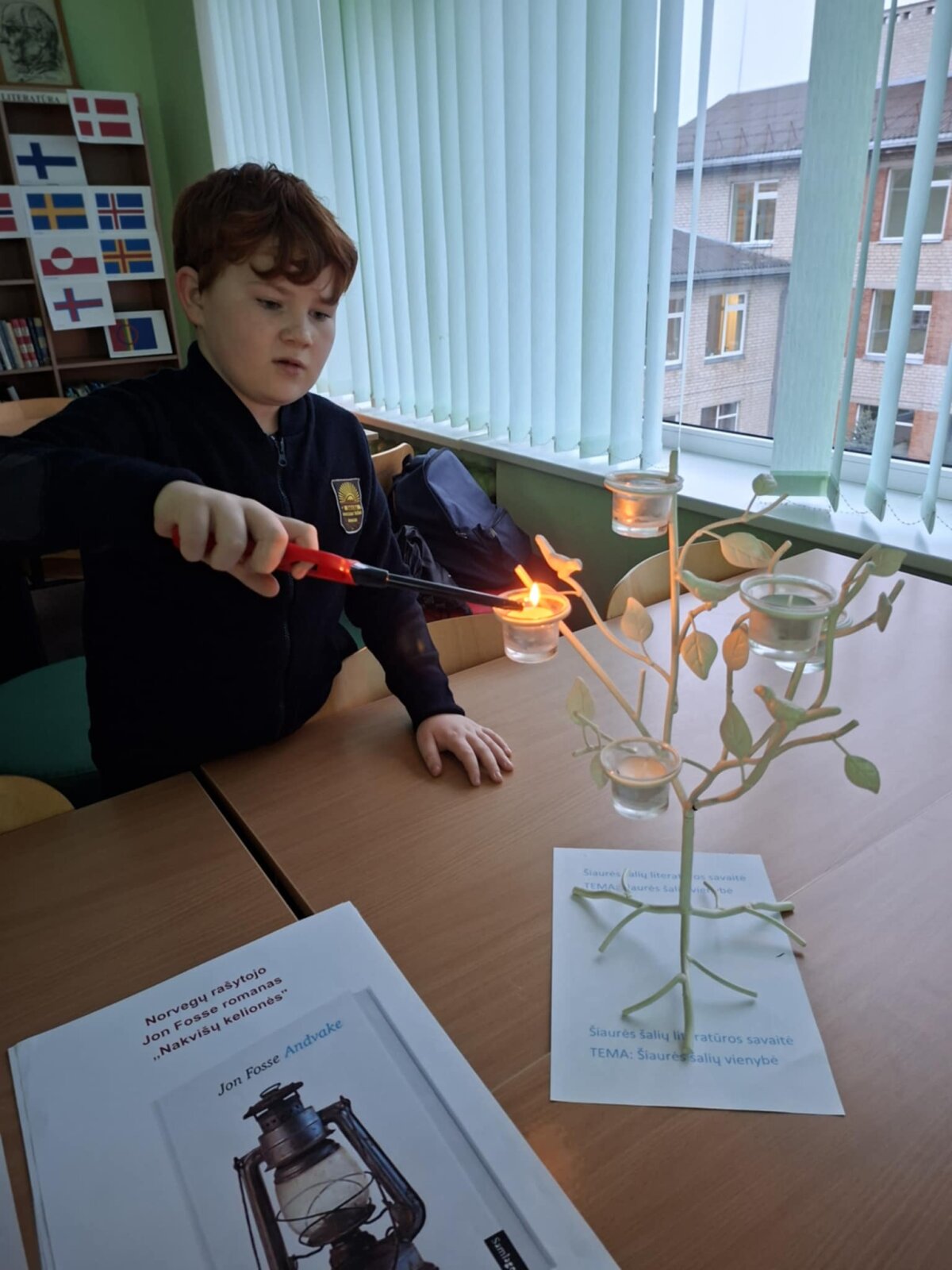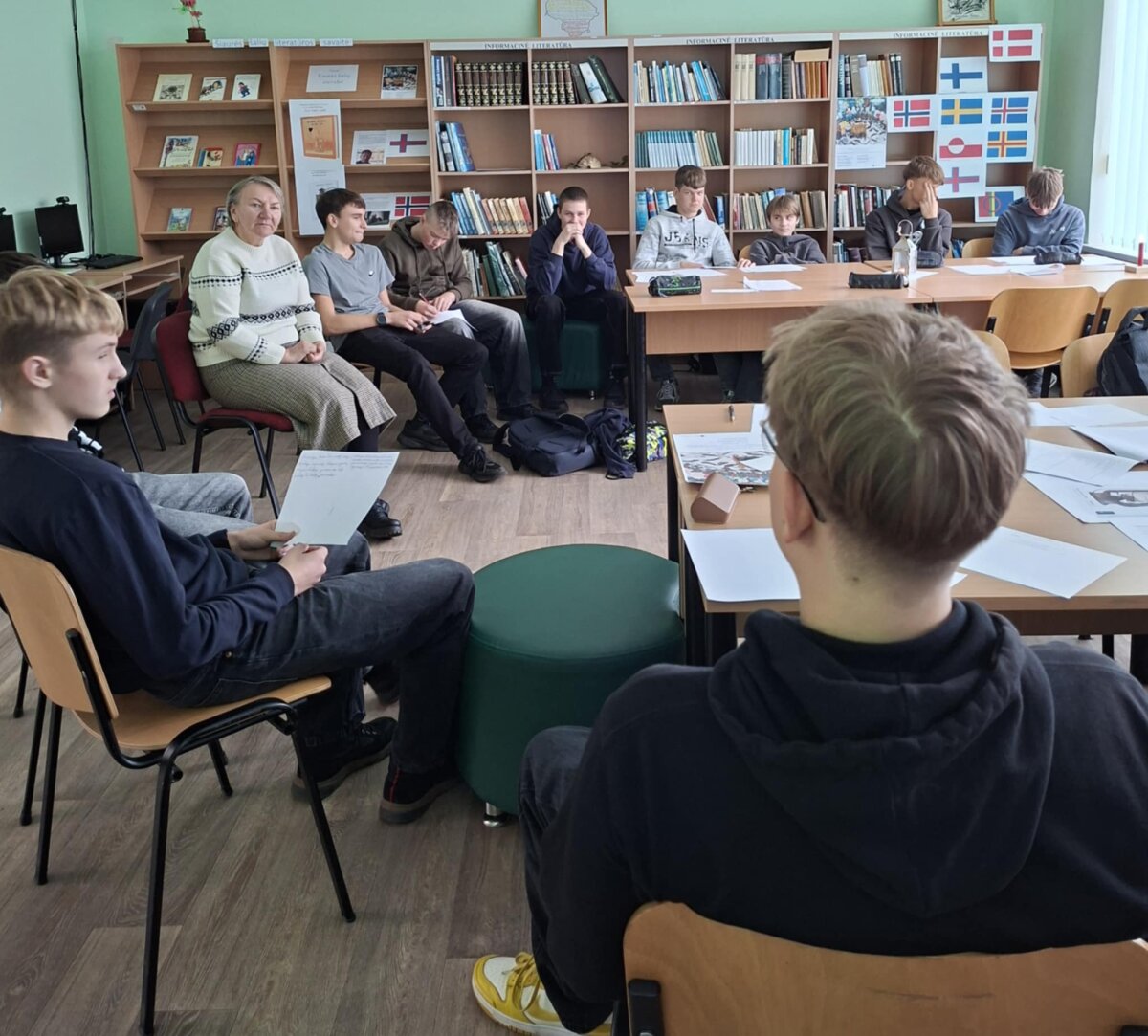 I ir II g klasių mokiniai kartu su lietuvių kalbos mokytoja Laima Višniauskaite garsiai skaitė norvegų rašytojo J. Fosse romano „Nakvišų kelionės“ ištrauką. Vyko vertybių diskusija „Kas yra gėda“, rašė laišką veikėjui, piešė siužeto kelionės žemėlapį, kūrė emocijų koliažą.