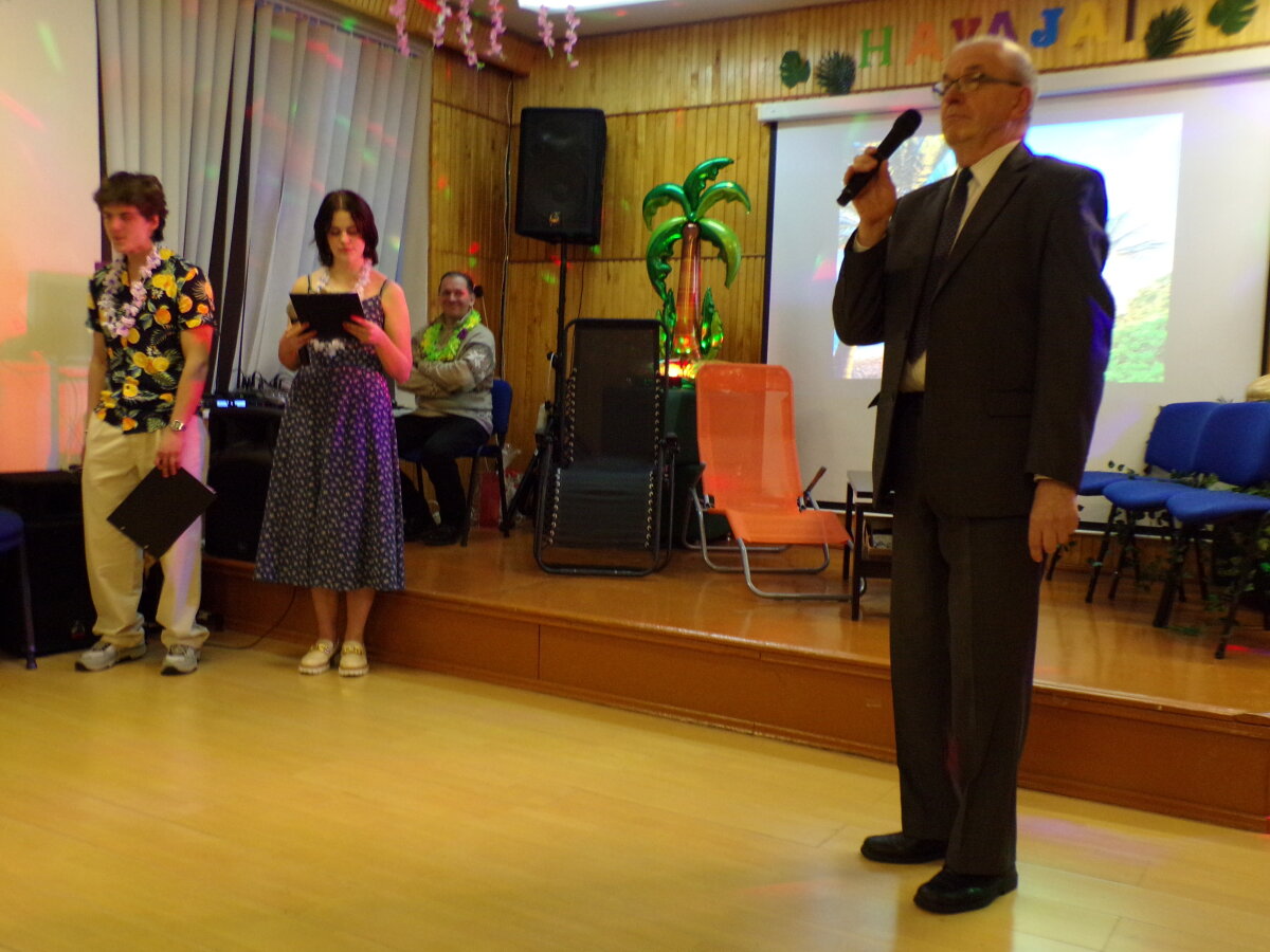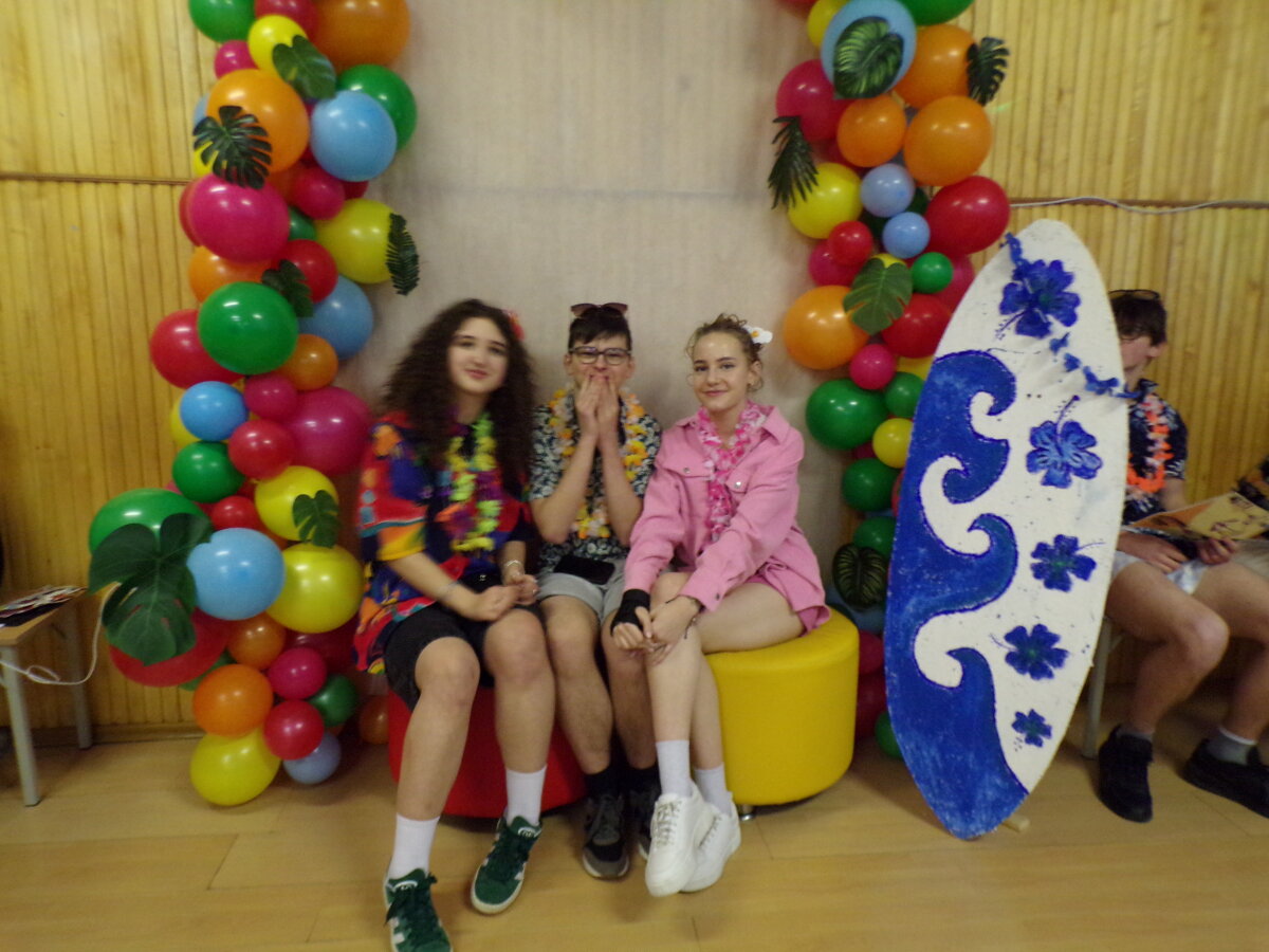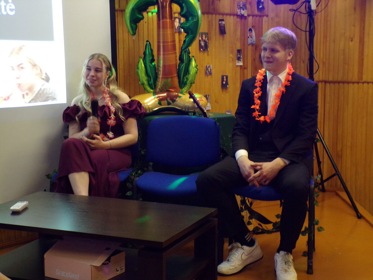 Vienuoliktokai pakvietė dvyliktokus ir jų auklėtoją Stasę Mažučiūnienę į „100 dienų kelionę po Havajus“. Tai laikas, kai kiekviena likusi diena tampa vertingu žingsniu link naujų horizontų, kai dvyliktokams reikia pagauti sėkmės bangą ir užtikrintai nuplaukti link savo svajonių krantų.